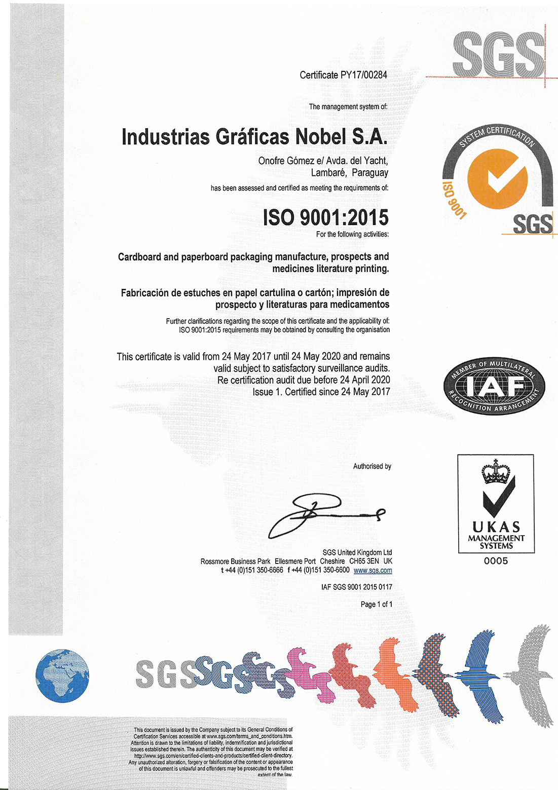 La Industria Graficas Nobel SA., en su constante desarrollo y crecimiento de su producción y calidad de sus productos y servicios en el mercado nacional e internacional, adopto el Sistema de Gestión de la Calidad (SGC) con la Certificación Internacional de la ISO 9001:2015.
